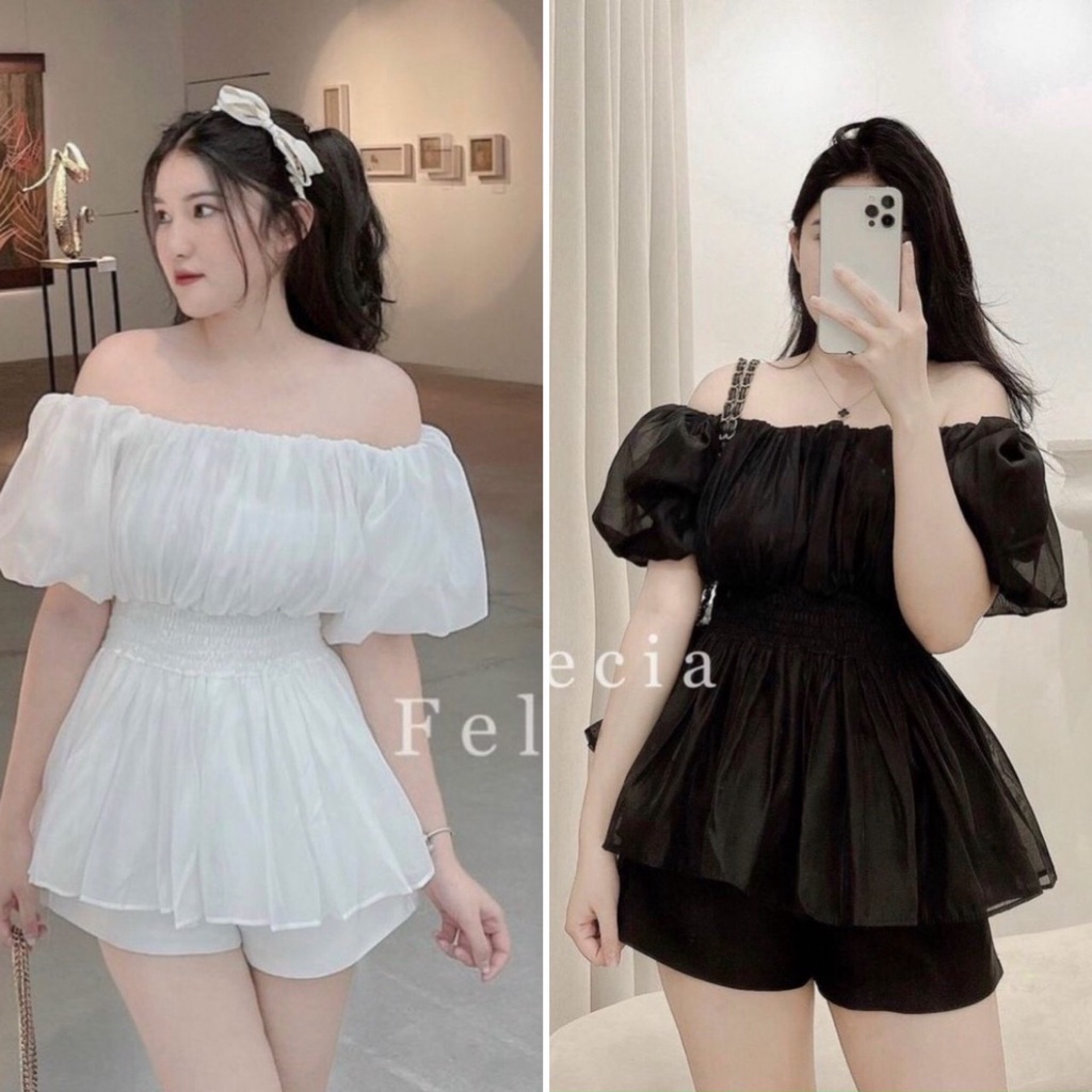 Giới thiệu Áo voan tơ bẹt vai bo eo Trắng - Đen phong cách hàn quốc nhã nhặn basic sexy