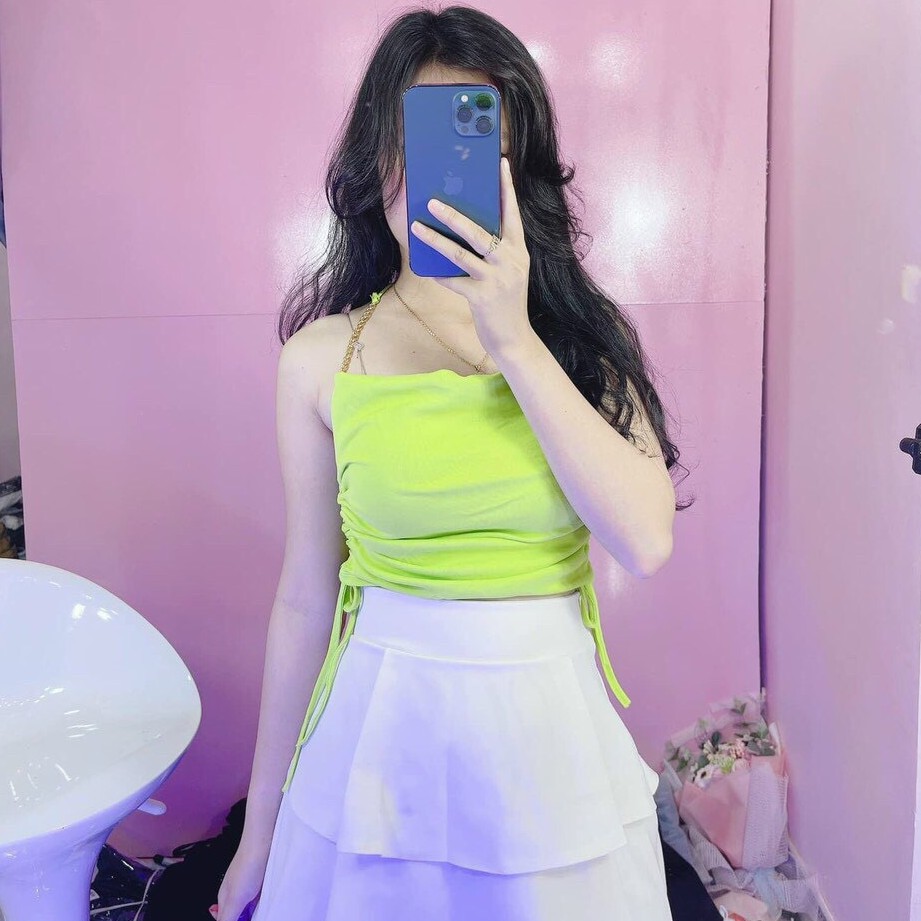 Áo yếm dây xích đeo cổ nhún sườn rút dây 2 bên cực xinh , chất thun bozip mềm mịn
