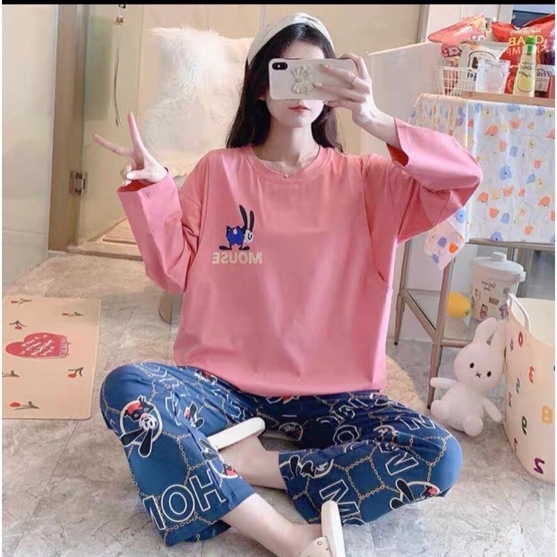 Giới thiệu Bộ đồ bà bầu dài tay thu đông chất cotton Hình CHUỘT mặc nhà thấm mồ hôi đẹp giá rẻ