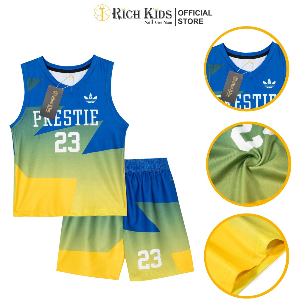 Giới thiệu Bộ Ba Lỗ Bé Trai, Đồ Bộ Bóng Rổ Cho Bé Từ 10 Đến 48kg, Vải Co Giãn Thoáng Mát - Richkids