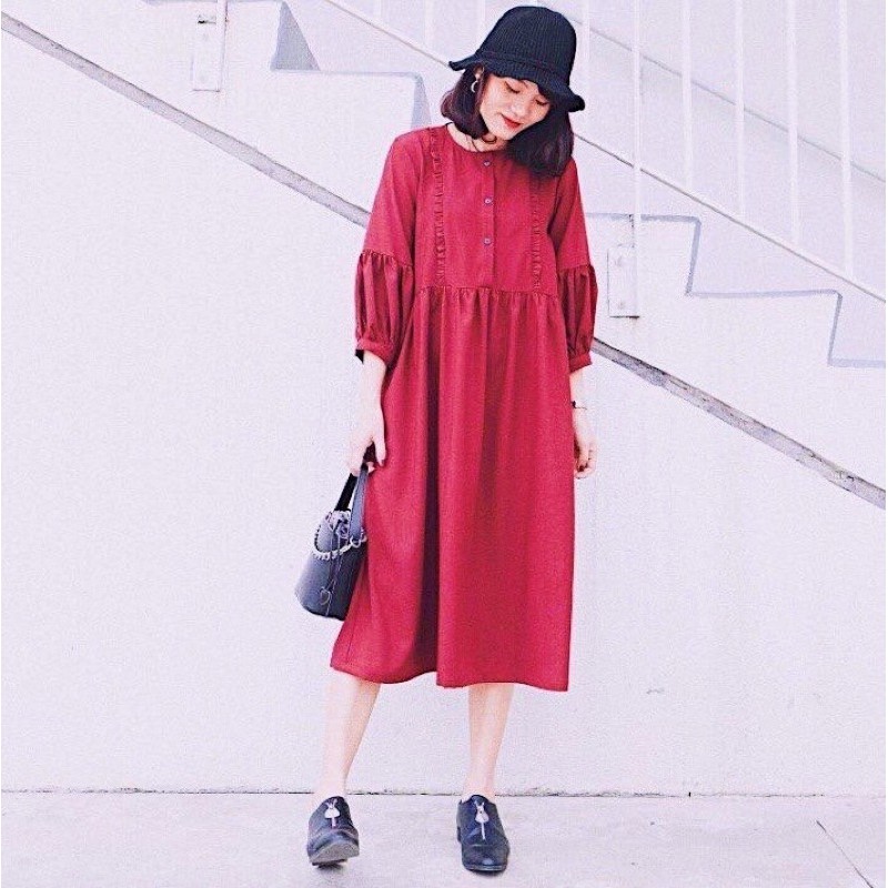 Thời Trang Nữ > Đồ truyền thống > Đầm || Babydoll đỏ form dài (kèm hình thật)