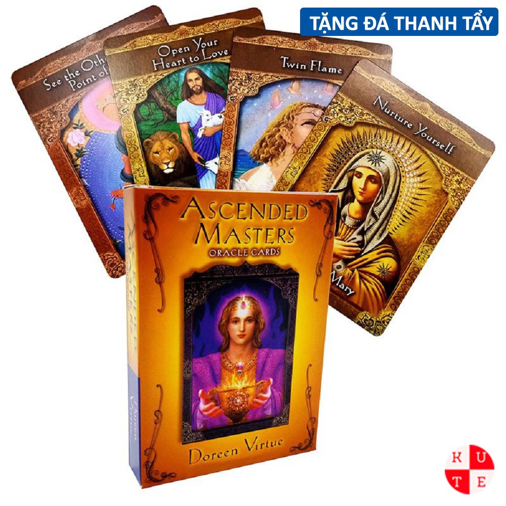 Bài Oracle Ascended Masters 44 Lá Bài Tặng Đá Thanh Tẩy ✔️ Theo nhu cầu phổ biến, Doreen Virtue đã tạo nên một tuyệt phẩm bài tiên tri dựa trên cuốn sách bán chạy nhất của mình Archangels & Ascended Masters. ✔️ Bộ bài bao gồm 44 bức vẽ tuyệt đẹp về những vị thánh nhân của từng nền văn hóa, như Ganesha, Merlin, Saint-Germain, Apollo, Pallas Athena, White Buffalo Calf Woman, Jesus, Moses, Yogananda, Green Man, và Kuthumi. ✔️ Với mỗi bộ bài tiên tri của Doreen, các thông điệp trên lá bài đều tích cực, chính xác và định hướng cuộc sống.