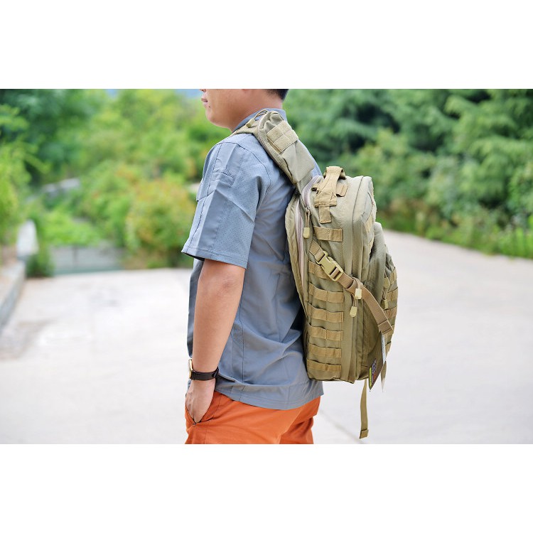 Balo thiết kế 1 quai đeo chéo, có thể để laptop 4 inch. Vải chống thấm, chất liệu dùng cho quân đội cực bền bỉ.