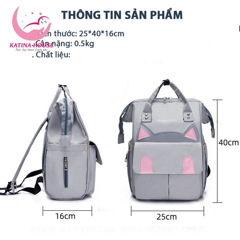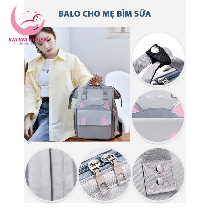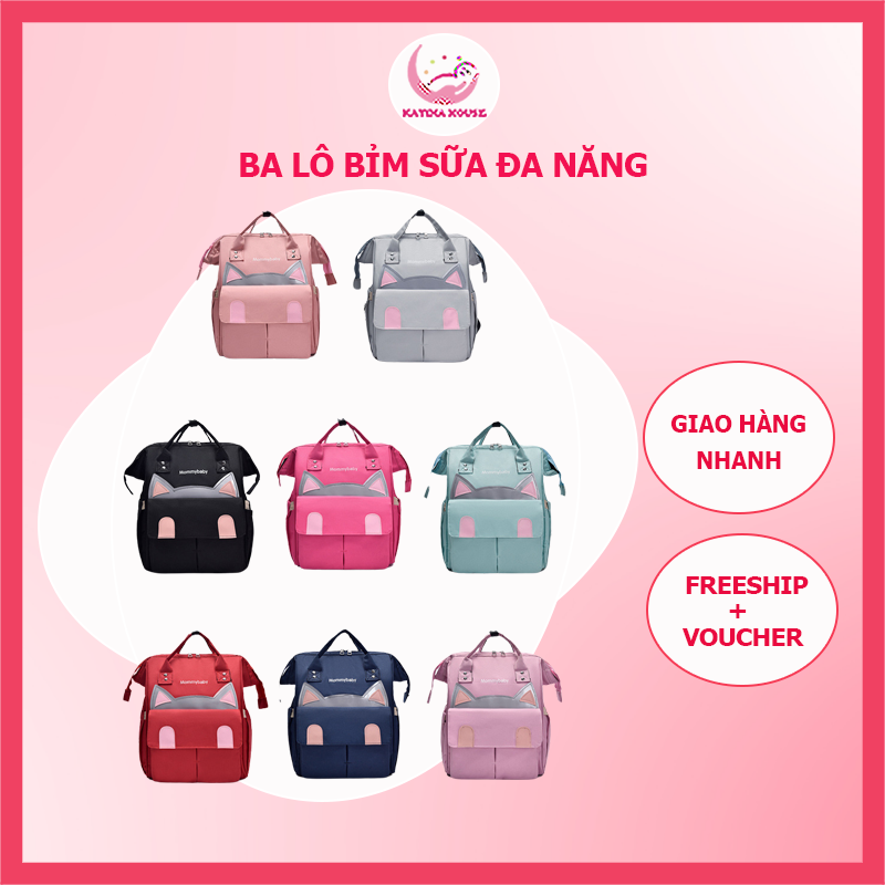 Mẹ cảm thấy mệt mỏi với núi đồ đạc, quần áo đến tã bỉm cho bé sơ sinh phải mang theo. Làm sao để cho hết đống đồ đạc đó vào trong chiếc túi đựng bỉm sữa nặng nề thông thường. Thấu hiểu điều đó, xin giới thiệu Balo bỉm sữa đa năng cho mẹ và bé có túi giữ nhiệt 3 lớp. Balo được thiết kế với trọng lượng nhẹ, gồm nhiều túi phụ, sức chứa siêu lớn có thể đựng hết toàn bộ đồ của bé sơ sinh. Sản phẩm được thiết kế theo túi xách hình mèo yêu rất cute.