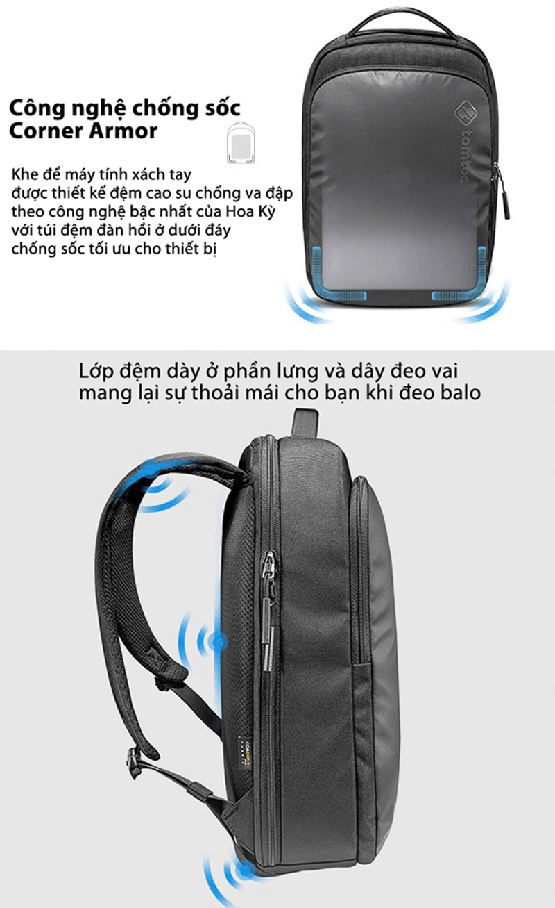Balo chính hãng TOMTOC (USA) Premium Lightweight Business mang xu hướng trẻ trung phong cách Âu Mỹ với chất vải cao cấp và từng chi tiết đường kim mũi chỉ, dây kéo được các nhà thiết kế của Tomtoc chăm chút kỹ lưỡng và tỉ mỉ, công nghệ chống sốc độc đáo cùng kiểu dáng tinh giản, phù hợp để đi làm, đi học hay trong những chuyến công tác ngắn ngày.
