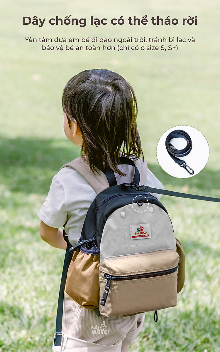 Một điểm độc đáo ở balo đi học Shukiku là có thêm dây kéo phía sau, dễ dàng tháo rời và lắp đặt mỗi khi sử dụng. Thiết kế đặc biệt có ở size S, S+ phù hợp với những bạn nhỏ từ 1-3 tuổi rất năng động và tinh nghịch, mẹ có thể kiểm soát và kéo con đi dễ dàng hơn.