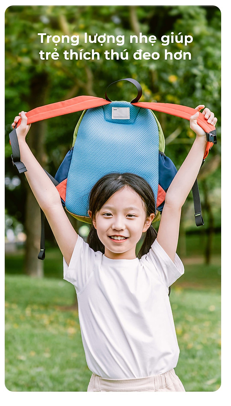 Chiếc balo màu sắc đủ nhẹ để con có thể đeo, cầm hoặc xách một cách dễ dàng, thoải mái, giúp con chủ động và thích đeo balo hơn mỗi ngày.