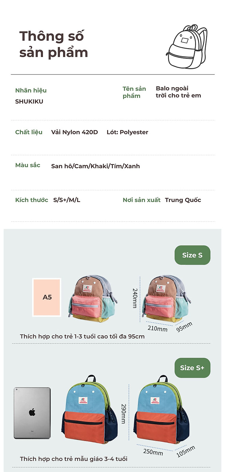Balo màu sắc Nhật Bản Shukiku sẽ là món quà tuyệt vời cho trẻ từ 1 tuổi, đi chơi hay đi học đều có thể sử dụng, có 4 kích thước cùng nhiều thiết kế màu sắc phù hợp với mọi lứa tuổi, trọng lượng nhẹ sẽ giúp con có nhiều trải nghiệm tuyệt vời cùng chiếc balo siêu cưng này.