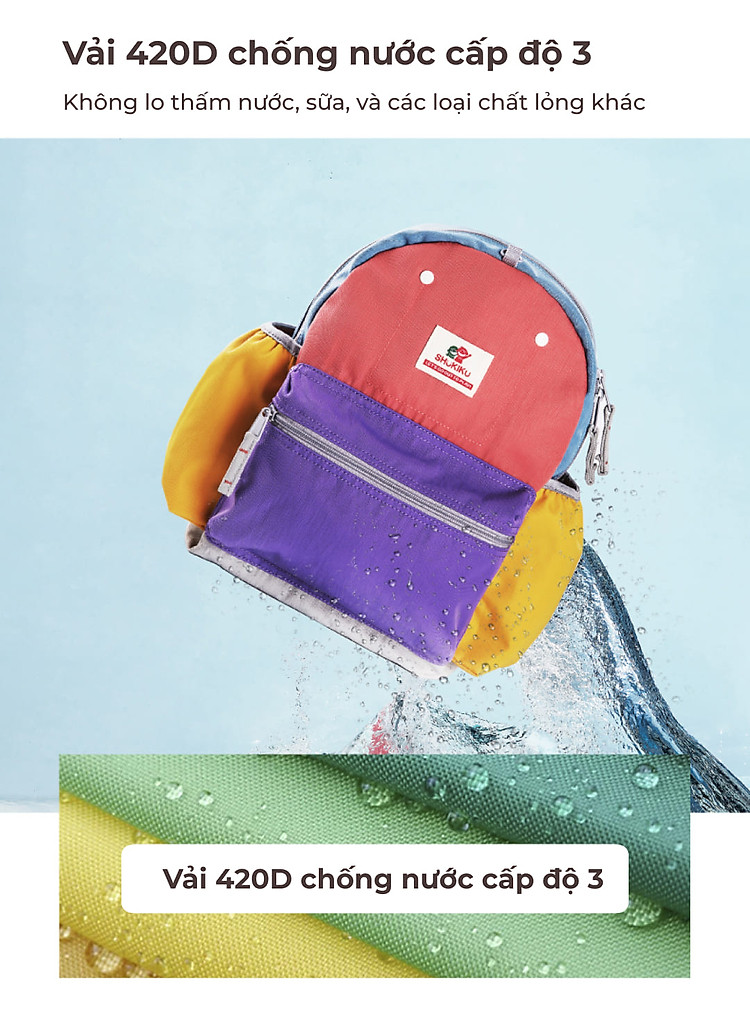Balo màu sắc Nhật Bản có thêm móc khóa nhỏ phía trước để bé có thể treo kính, dây chuyền hay phụ kiện cực kỳ thời trang, bé có thể bảo quản balo của mình bằng cách viết tên lên nhãn dán phía sau lưng để đánh dấu, tránh bị mất đồ hoặc nhầm lẫn với các bạn. Túi đựng 2 bên với diện tích lớn, chất liệu đàn hồi tốt có thể bỏ bình nước 500ml. Sử dụng chất liệu vải dày dặn, mịn, cực kì bền chặt, sử dụng được lâu dài. Kết cấu dây đeo chắc chắn, an toàn.