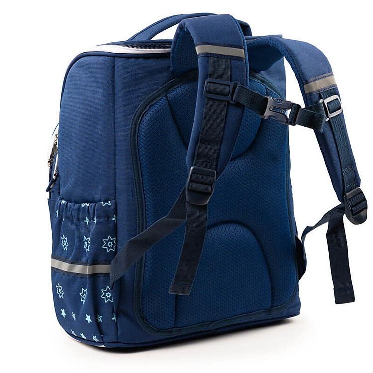 Phía sau balo được thiết kế với những rãnh thoáng khí giữ cho lưng bé luôn thoáng mát, chống va đập mạnh , giúp chống gù lưng, bảo vệ cột sống bé tốt hơn khi mang nặng. Quai đeo balo được may dày, có đệm mút nhẹ, có thể điều chỉnh theo vóc dáng giúp giảm trọng lực lên vai của bé và được thiết kế thêm dây đai ngực giữ balo ôm chặt vào người bé khi bé chơi đùa, chạy nhảy. Ngoài ra, quai đeo có thêm 1 đoạn dây phản quang giữ an toàn khi bé đi học khi trời tối. Bên dưới balo có chân đế có thể dễ dàng giữ đứng balo và chống bám bẩn khi các bé để balo tiếp xúc với mặt đất. Balo có thể xếp gọn khi không sử dụng bằng cách gỡ các nút gày 2 bên. Thuận tiện hơn trong các trường hợp cần thiết. Dây kéo hợp kim chống rỉ sét, với thiết kế lá kéo hình vương miện đặc sắc góp phần làm nổi bật lên chiếc balo chống gù 927