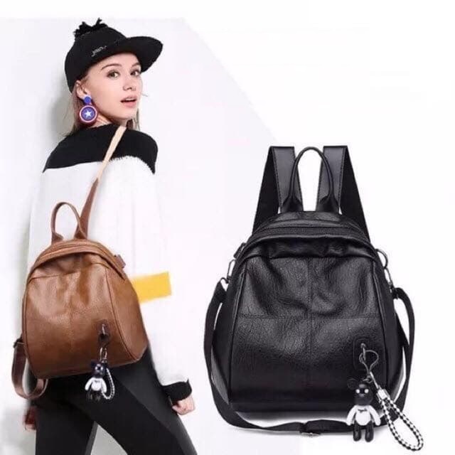 Balo Cóc Da Pu Mềm Chất Đẹp Móc Khóa Gấu: