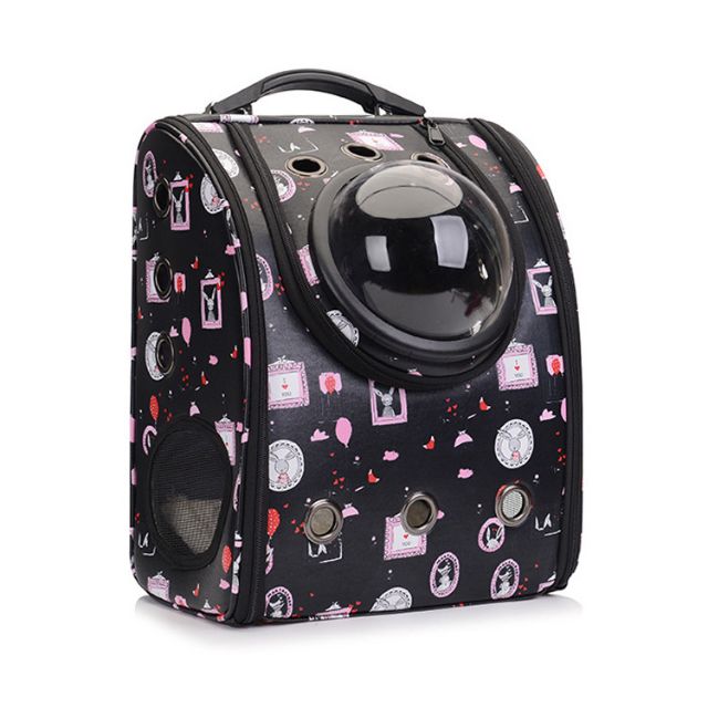 Balo da họa tiết cho chó mèo. Không gian thoải mái kín đáo, có kính cầu và kính lưới.