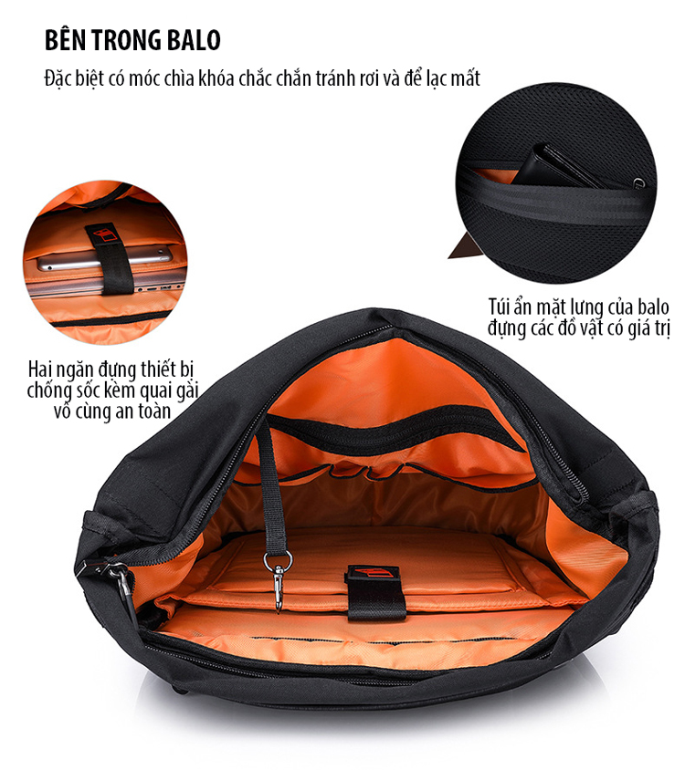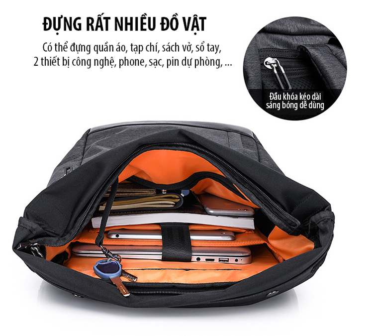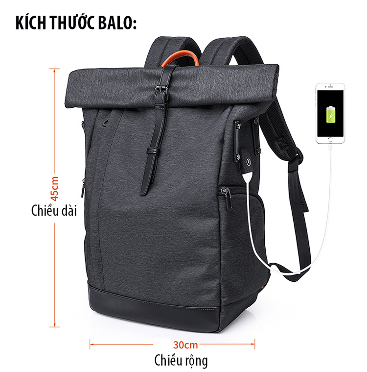 Balo đa năng có kích thước 45 x 30 x 16 (cm), mỏng nhẹ 0.95 (kg) chứa được trọng lượng từ 20-35 (L) giúp bạn đựng được nhiều đồ vật, đồ cá nhân, laptop, tránh bị quên khi ra ngoài.Balo Laptop 16 inch có cấu trúc là hình hộp đứng thiết kế nắp túi cuốn được bảo vệ bằng 2 miếng băng dính gai, 2 nút bấm ở 2 bên, 1 đầu khóa kéo chắc chắn, êm, mượt, rất dễ sử dụng và dây khóa da cao cấp gồm 2 ngăn chống sốc lớn nhỏ (ngăn lớn đựng Macbook, Laptop 16 inch trở xuống, ngăn nhỏ có thể đựng iPad, Kindle, ) được bảo vệ bởi đai gắn cố định giữ thiết bị không bị rơi ra ngoài hay bị lắc qua lại giúp chống sốc tốt nhất. Ngoài ra, còn 1 ngăn phụ nhỏ có đầu khóa kéo, 2 ngăn phụ rời và 2 ngăn dắt bút, ngăn ở giữa rộng bạn cũng có thể đựng quần áo, tài liệu, sách vở, Đặc biệt, có dây treo chìa khóa tránh rơi hay để lạc mất. Quai đeo và mặt lưng của balo thiết kế đệm lưới tổ ong thoáng khí không gây nóng và ướt ở vai, được may bằng kỹ thuật gấp mép dây viền, được đánh bọ công nghiệp ở vị trí ẩn giúp mang đồ với khối lượng lớn mà không bị đứt quai đeo, thiết kế ôm rất sát hai vai, dây kéo phía trên dùng để truy cập vào trong balo nhanh hơn khi vội, dây kéo phía giữa là đầu khóa của túi Zip ẩn ở mặt lưng đựng điện thoại hoặc vật giá trị cao tránh móc túi hay rơi rớt cũng là điểm nổi bật ở balo này.Balo đa năng có cấu trúc hoàn thiện, an toàn cho người dùng, tỉ mỉ từng đường kim mũi chỉ, dây kéo khít cao cấp không bị gì rít cũng như không bị rỉ nước vào bên trong, đầu khóa kéo dài giúp cầm kéo dễ dàng, nhẹ nhàng, êm mượt, quai đeo thoát nhiệt và có thể điều chỉnh nới dài – thu ngắn theo chiều cao người dùng vô cùng linh hoạt.Điểm nổi bật nữa của balo là cáp sạc ẩn, bên hông phải của balo có một cổng USB giúp bạn có thể để dàng cắm dây sạc điện thoại và phone vào. Tuy nhiên nó chỉ là một cổng USB nối dài, để sạc được thì bạn cần phải có cục sạc dự phòng ở bên trong. Cũng cần lưu ý là bạn cần sử dụng loại sạc dự phòng mà cắm USB vào là tự động sạc, chứ loại phải nhấn nút thì phải mở ba lô ra kích hoạt thì mới sử dụng được. Tính năng mới này vô cùng tiện lợi và an toàn cho người sử dụng.Điểm nổi bật kế tiếp thì phải nói đến đai ngang ở mặt lưng Balo dùng để gắn vào tay cầm của Vali chống rơi rớt, chống giật, vô cùng an toàn.Hình ảnh thực tế của sản phẩm: