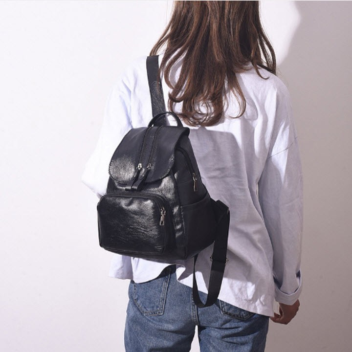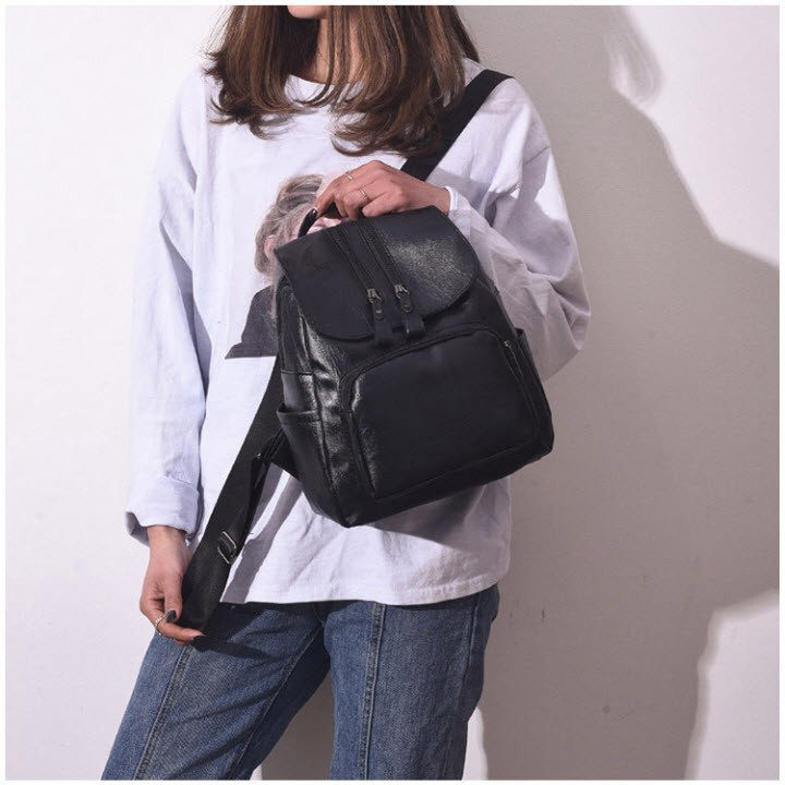 Balo da nữ full đen là balô kết hợp với túi xách rất tiện lợi lại hợp thời trang