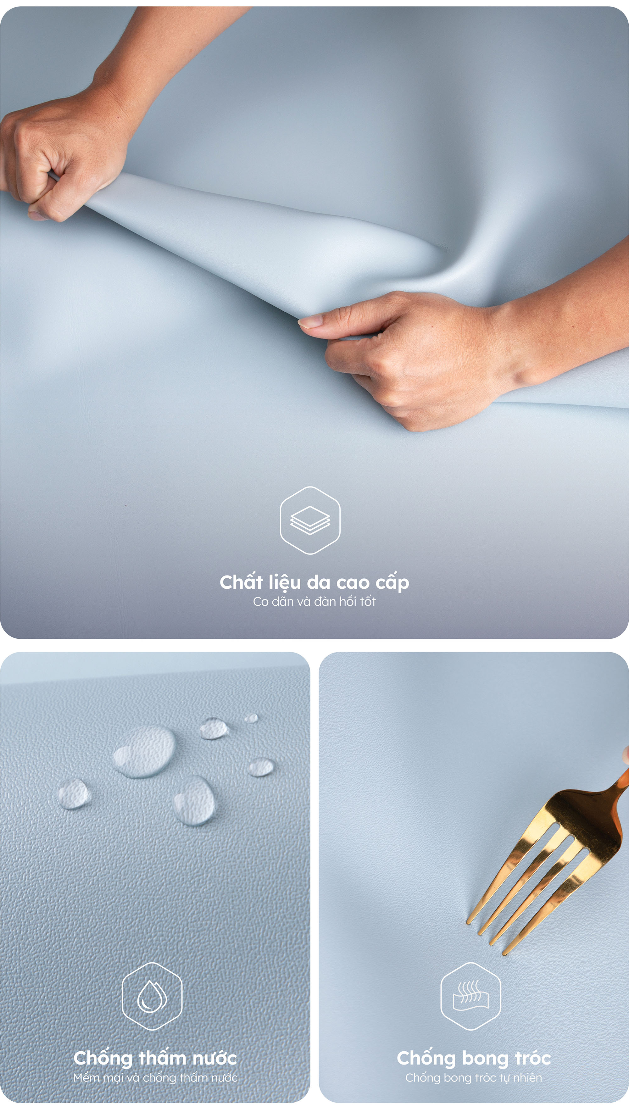 - Có thể vệ sinh bằng khăn khô hoặc các dung dịch vệ sinh dành riêng cho da