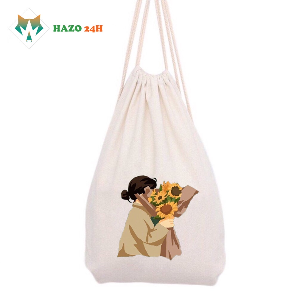 Giới thiệu Balo dây rút vải canvas Nhỏ Xinh họa tiết Sunflower 524 xinh xắn dễ thương phong cách Hàn Quốc