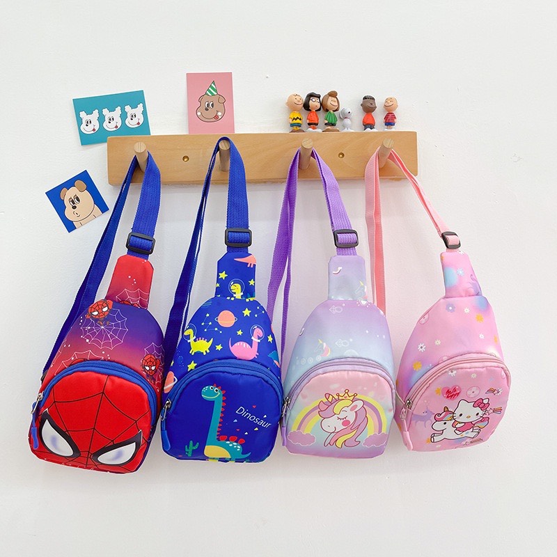 Balo đeo chéo hoạ tiết, túi nhỏ nhỏ xinh xinh cho các bạn bé mang đi chơi, để vài thứ linh tinh nhưng các bé lại rất thích.