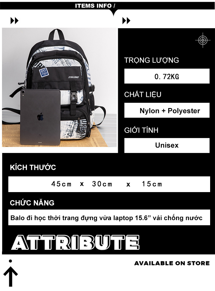 Kích thước | 45CM* 15CM* 30CM đựng vừa laptop 15.6inch |