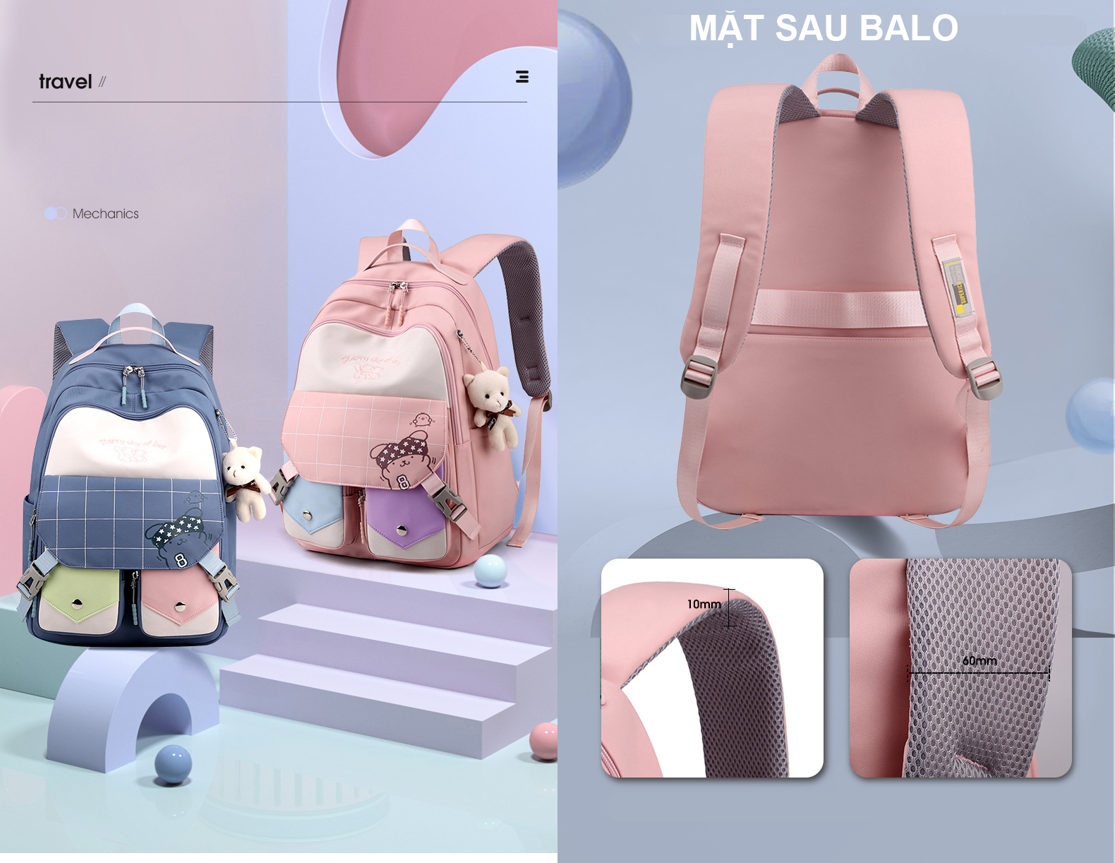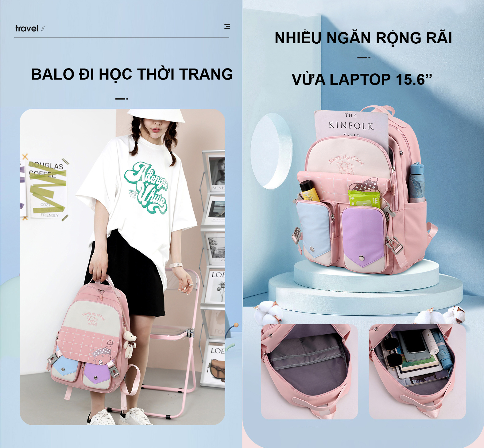 Balo đi học nữ thời trang ulzzang hàn quốc vải cao cấp nhiều màu pastel dễ thương đáng yêu đựng laptop 15.6 9496