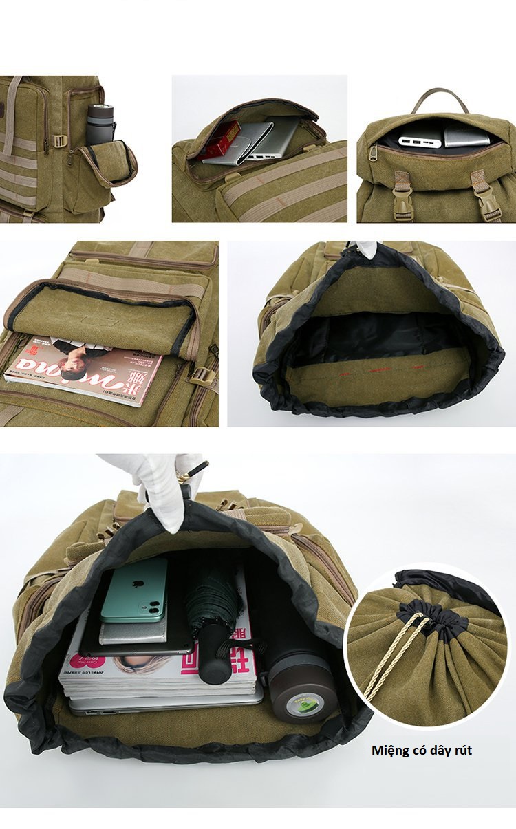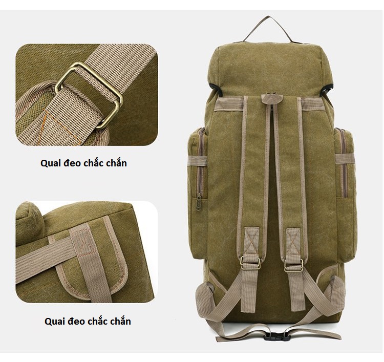 – Balo phượt, balo du lịch thiết kế thời trang trẻ trung, năng động – Balo sử dụng chất liệu vải canvas cao cấp, dày dặn, đường kim mũi chỉ chắc chắn. – Size sản phẩm 78 x 35 x 17 cm, dung tích 75-90L -Phù hợp: đi du lịch, phượt, leo núi dài ngày – Điểm nhấn của balo là đường nét thiết kế hiện đại, cá tính, đơn giản mà menly. –Balo có ngăn chính rộng rãi và có nhiều ngăn giúp để đồ tiện lợi – Balo phù hợp để đi học, đi làm, đi chơi, dã ngoại, du lịch hay về quê hoặc những chuyến đi ngắn ngày – Balo được làm với độ bền và cứng cáp cao, balo có thể được đeo 1 quai hoặc cả 2 quai, dây đeo có thể được chỉnh để phù hợp với người mang. – Hệ thống đệm lưng phía sau có thể chống sốc và có nhiều lỗ thoát khí mang lại cảm giác dễ chịu cho người sử dụng khi đi xa. – Những lỗ thoát khí được đặt ở mặt lưng và bên dây đeo để thấm hút mồ hôi và giảm nhiệt khi mang trên lưng. – Những phần tay cầm và dây đeo được làm từ nylon để đảm bảo độ chắc chắn khi mang vác. – Thích hợp cho các hôm đi chơi xa từ 3 đến 4 ngày, hợp thời trang và cực kì tiện lợi. – Balo được thiết kế với những đường nét đơn giản phối và họa tiết nổi bật tạo điểm nhấn ấn tượng tăng vẻ thời trang cho sản phẩm, đường may đẹp