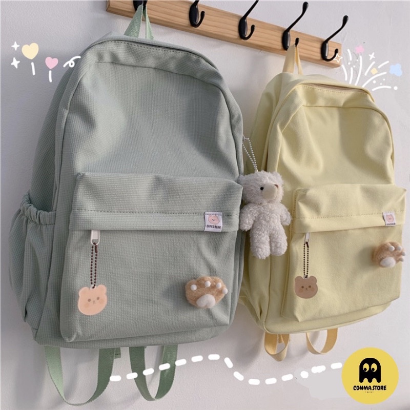 🍒 Balo Difa bag xinh xắn với 4 màu pastel nhẹ nhàng 🧡 - Size 29x39x12cm đựng vừa giấy a4, laptop 14inch, ko vừa lap 15,6inch - Chất liệu vải poly dù khá mềm, mịn, ko phải dù bóng - Khả năng chống thấm nước nhẹ nhàng - Balo ko kèm sẵn các loại phụ kiện - Shop có bán kèm phụ kiện: sticker | pin cài, móc khoá gấu, vịt, hoa kaikai kiki, ếch xanh...