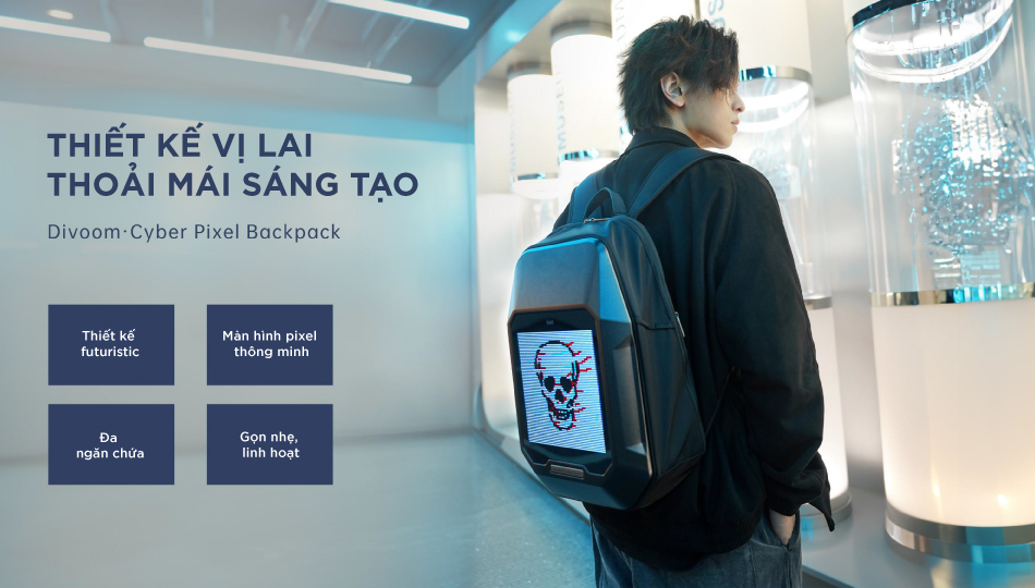 Divoom là một thương hiệu HongKong nổi bật với các sản phẩm loa nghe nhạc, phụ kiện decor đẹp mắt sáng tạo hay các dòng balo túi đeo chéo tích hợp màn hình LED độc đáo. Tiếp tục mang đến mẫu ba lô mới cải tiến hơn về thiết kế, nâng cấp màn hình LED pixel, Divoom chính thức ra mắt mẫu ba lô mới mang tên Cyberbag - thiết kế theo phong cách vị lai futuristic. Hãy cùng khám phá nhé!