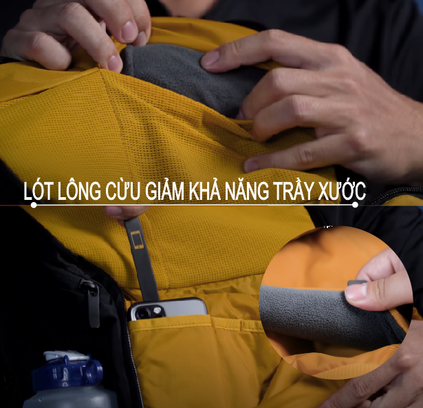 Túi hai bên hông balo dành riêng cho việc đựng nước và dù. Dây đeo có thể tùy chỉnh cân đối với từng cơ thể người sử dụng. Đồng thời, tấm đệm lưng có các lỗ thoát khí mang lại cảm giác thoải mái mà không bị bí và khó chịu nhé.