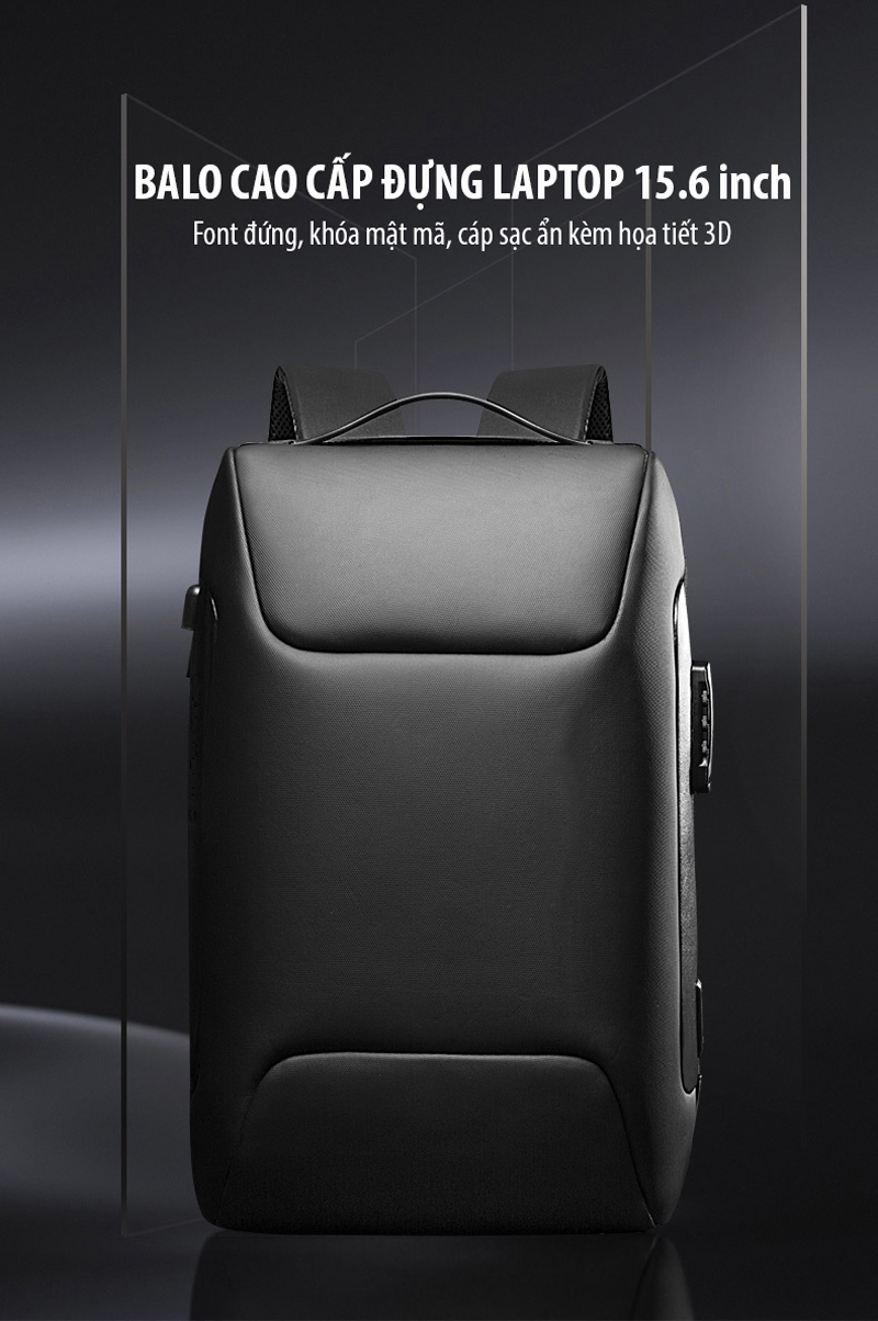 Balo đựng Laptop 15.6 inch font đứng, khóa mật mã, cáp sạc ẩn họa tiết 3D nhiều màuBalo đựng Laptop 15.6 inch từ chất liệu vải Oxford bên ngoài, nhựa PC cứng cáp ở giữa và lót Polyester chống thấm nư...