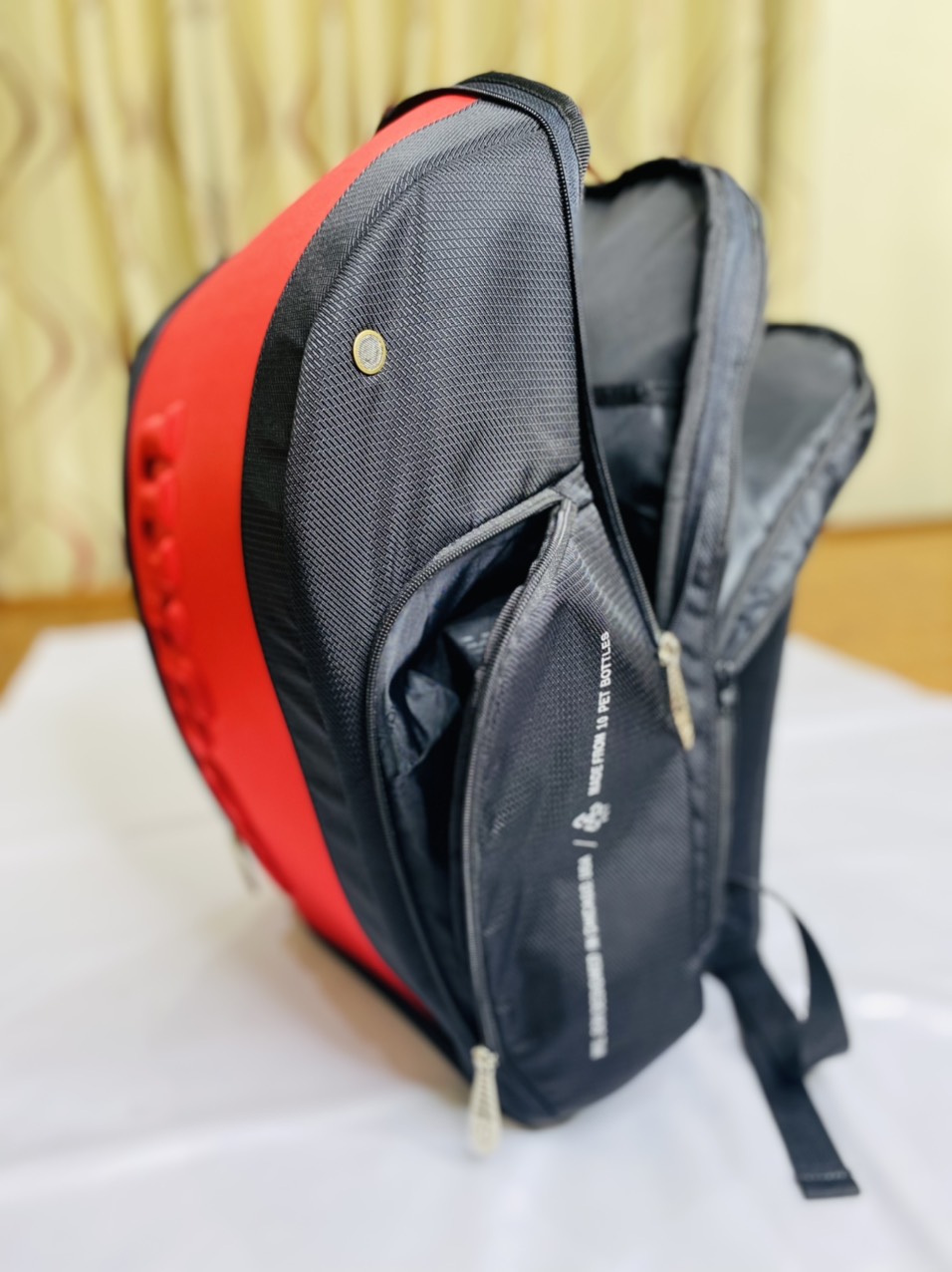 -- Có 3 ngăn to ( ngăn đựng vợt, quần áo và giày) , và 2 ngăn nhỏ.
