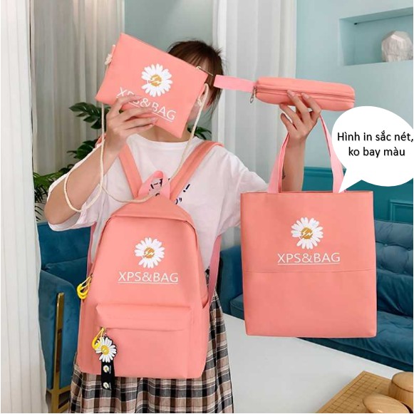 Giới thiệu Balo Hoa Cúc - Combo 4 Món - Tặng Móc Khóa Cho Học Sinh Đi Học Vải Chống Thấm Hàng Quảng Châu Cao Cấp MKZ53