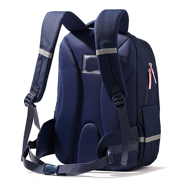 Quai mang balo phía sau có lớp đệm mút lưới giúp thoáng khí, không gây siết vai bé và tạo cảm giác êm vai khi bé phải sử dụng trong một thời gian dài.
