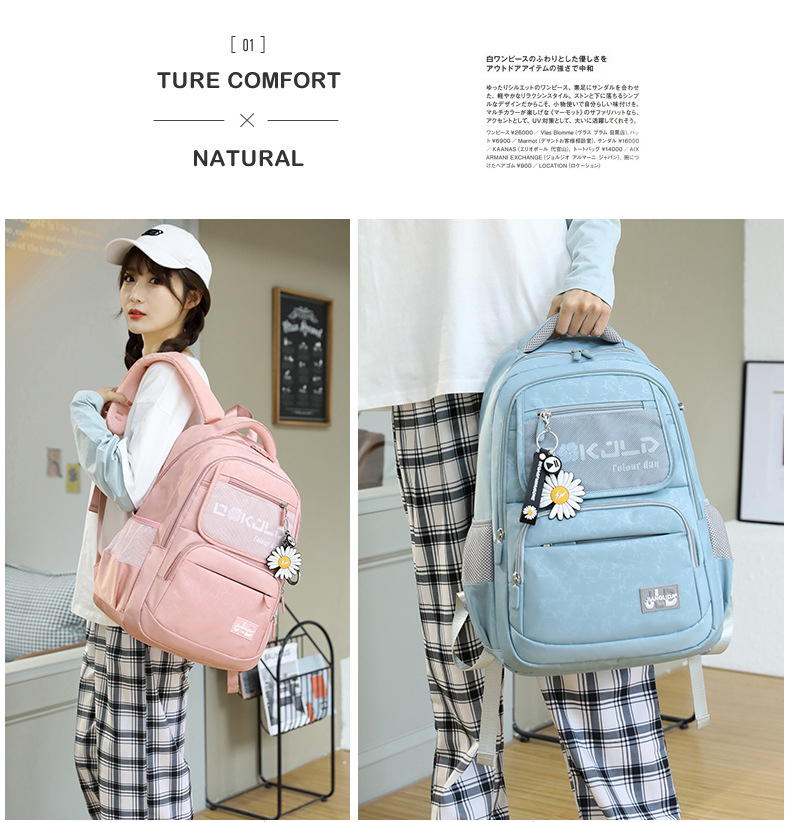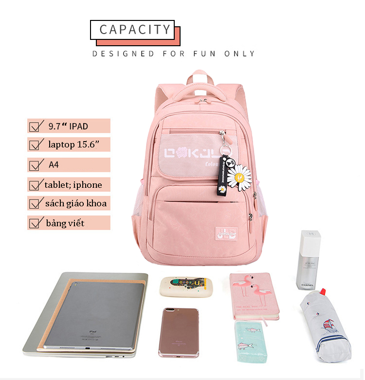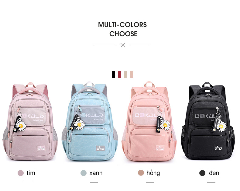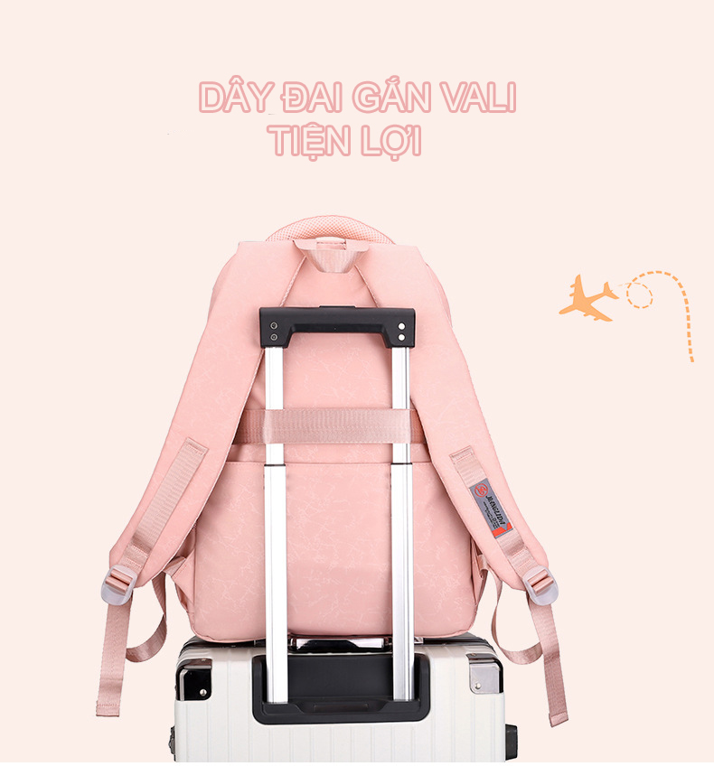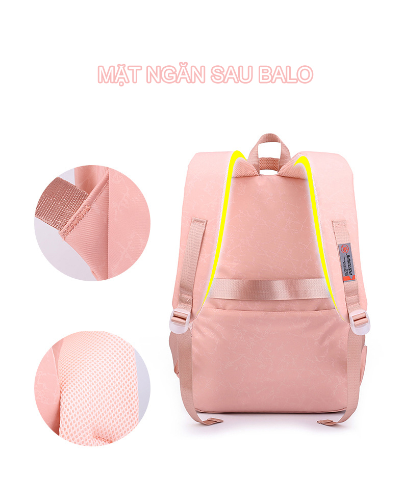 Balo học sinh nữ vải dù chống nước siêu nhẹ đi du lịch phối ngăn lưới cao cấp 9348