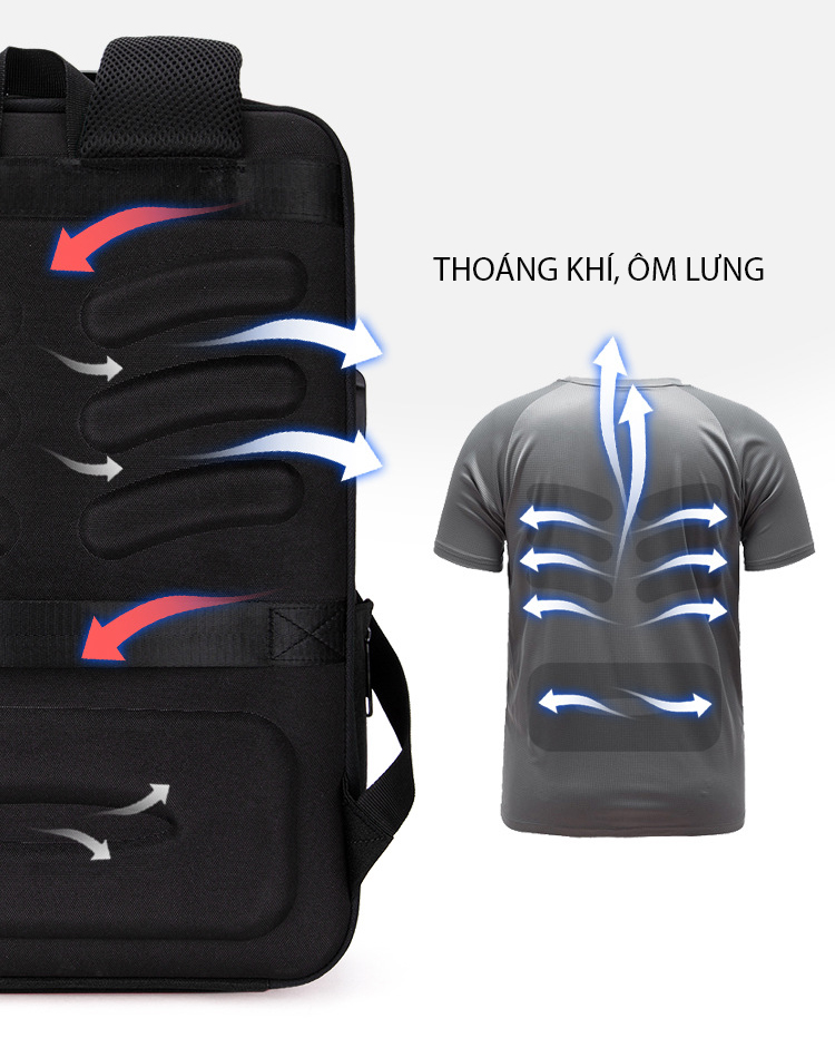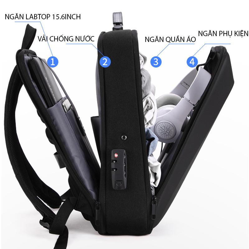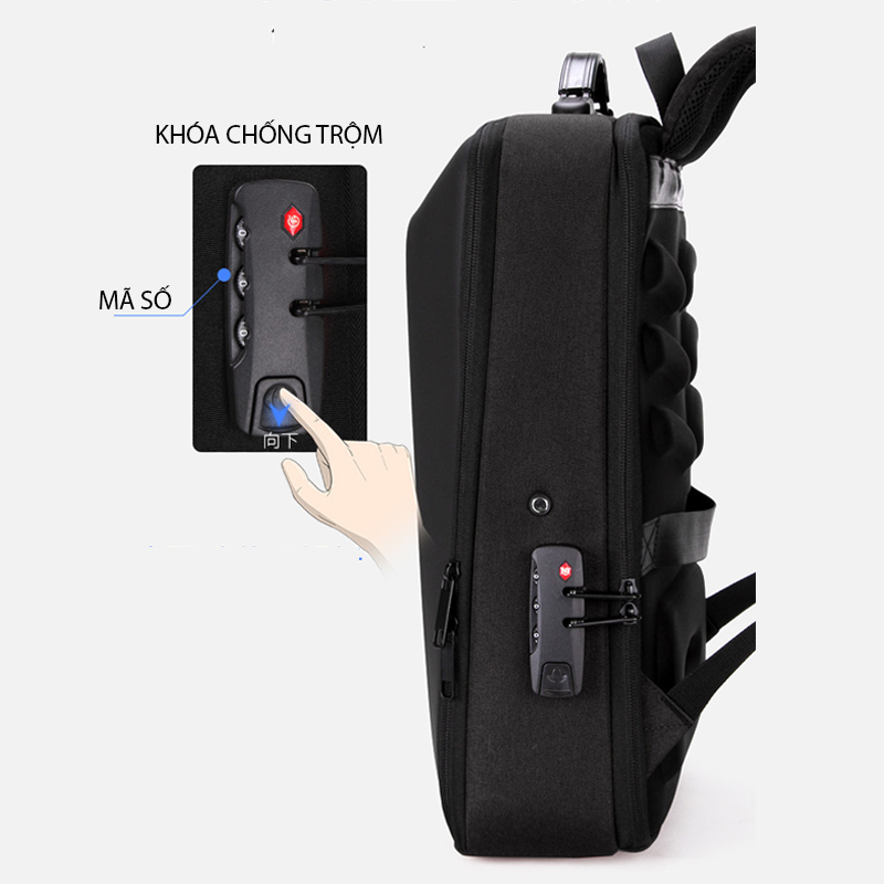 Chức năng: thoáng khí, chống mài mòn, dễ làm sáng, chống sốc, có sạc điện thoại, có khóa chống trộm
