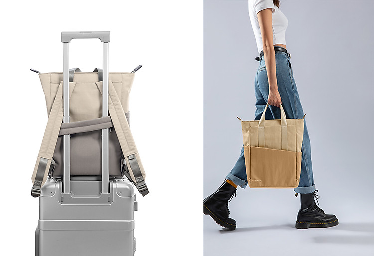 Túi được làm từ vật liệu siêu bền và chắc chắn, nhẹ nhưng nhỏ gọn và có thể chống lại bụi bẩn và ẩm ướt. Hệ thống túi xách bao gồm tay cầm ở phía trên, dây đeo vai mảnh và có đệm có thể điều chỉnh cũng như dây đeo hành lý 2 trong 1.