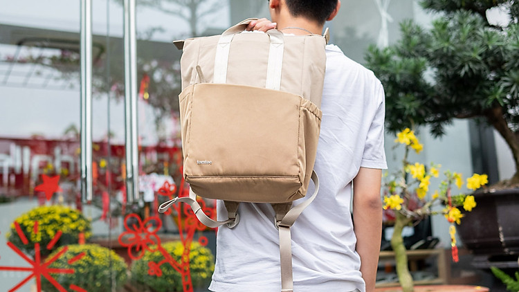 Bạn có thể mang nó với tay cầm kiểu dáng đẹp bằng cách giấu dây đeo vai vào túi sau.