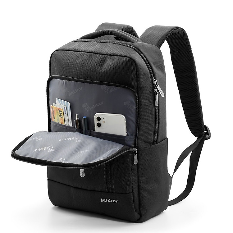 - Mặt trước balo đính logo biểu tượng thương hiệu Mikkor nổi bật.