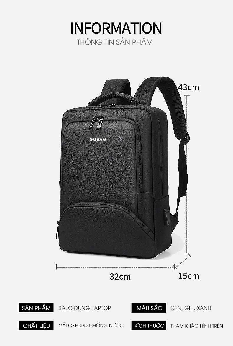 - Thiết kế nhiều ngăn: Laptop tối đa 15.6 inch, máy tính bảng, ô, sách vở, máy tính cầm tay, Quần áo và vật dụng..... Có ngăn để ví để điện thoại riêng biệt.