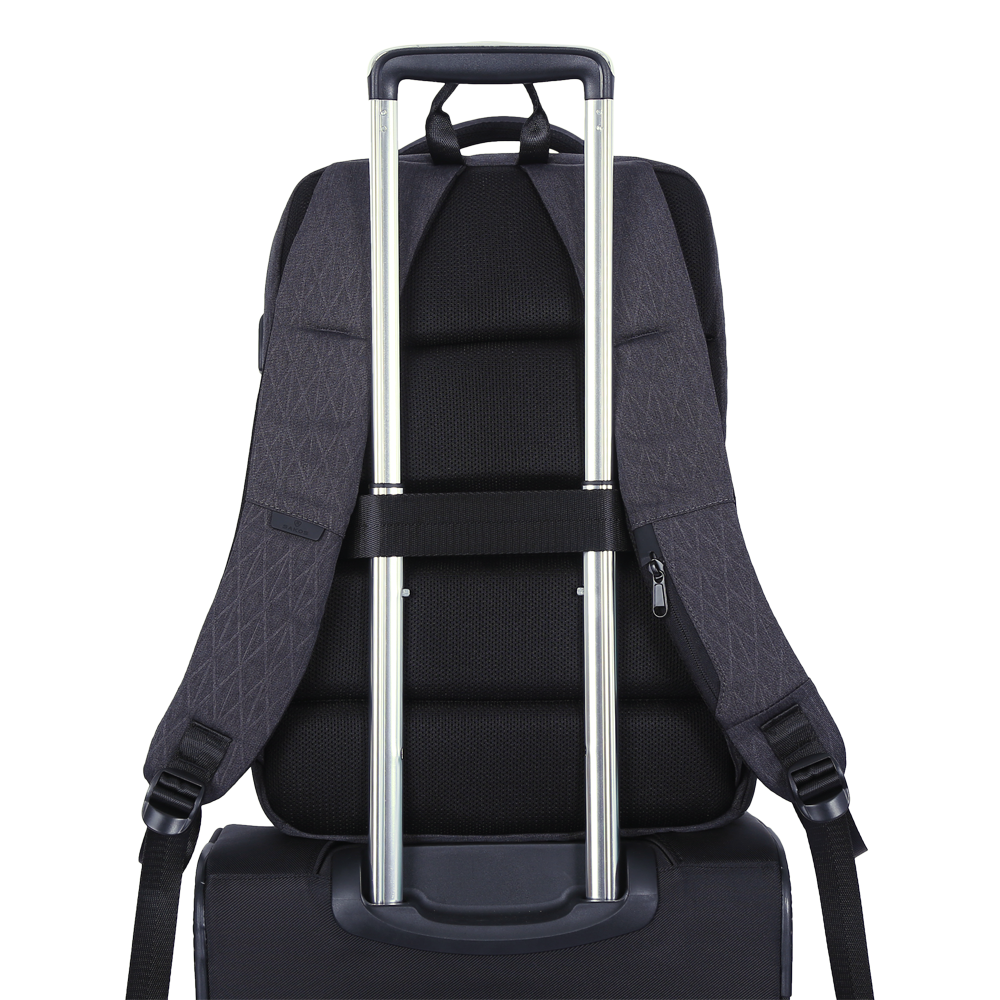 Tích hợp đai cố định ở phía sau balo để cố định vào cần kéo vali khiến mọi chuyến đi trở nên thật đơn giản.