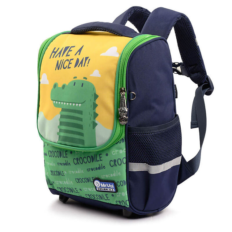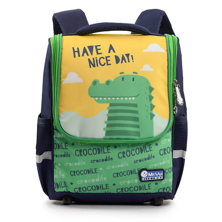 Được sử dụng chất liệu vải 600 PU với các ưu điểm nổi bật như siêu nhẹ, có độ bền theo thời gian, giữ được màu sắc tốt. Bên trong balo Mr Vui sử dụng vải Poly Oxford 100% chống nước, chống bám mùi, bảo vệ tốt cho đồ dùng học tập của các bé.