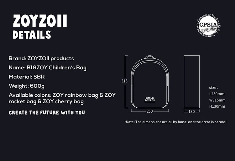 Balo đi học Zoyzoii đã thông qua những kiểm định nghiêm ngặt về an toàn và chất lượng CPSIA của Hoa Kỳ, không chứa các chất độc hại như chì, BPA, PVC,...chất liệu thân thiện với môi trường, hoàn toàn tự nhiên và có thể phân hủy.
