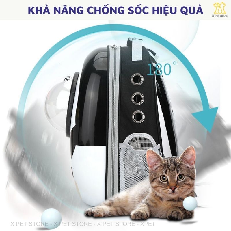 2. Balo Đựng Mèo Phi Hành Gia – X PET STORE - Thông số kỹ thuật : 42x35x20cm - Vừa với Cún <5.5kg, Miu < 6kg - Chất liệu: Nhựa cao cấp ABS không thấm nước, rộng, thoáng khí, có thêm cửa bên, không gian thoải mái, giúp các bé dễ chịu hơn. - Bộ sản phẩm bao gồm : Balo, Ô thoáng nhựa , Tấm lót vệ sinh, Vòm kính trong suốt - Balo phi hành gia có tay cầm, có khóa kéo, có lỗ thoáng gió, có ngăn đựng nước bên hông balo. - Dễ sử dụng, balo phi hành gia cứng nên giúp cho chó mèo thoải mái vận động bên trong mà không sợ kích ứng da. - Balo phi hành gia có quai đeo chắc chắn, có thể điều chỉnh độ ngắn/dài theo ý muốn. - Dễ dàng tháo gấp gọn lại khi cần.