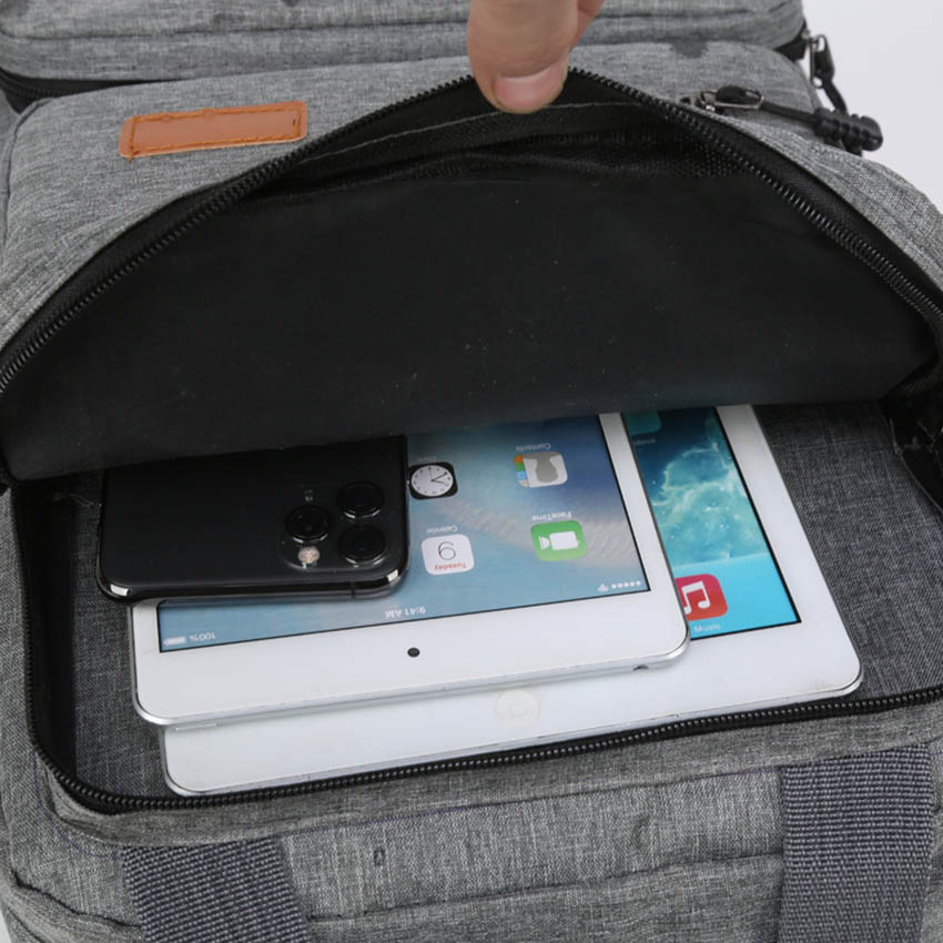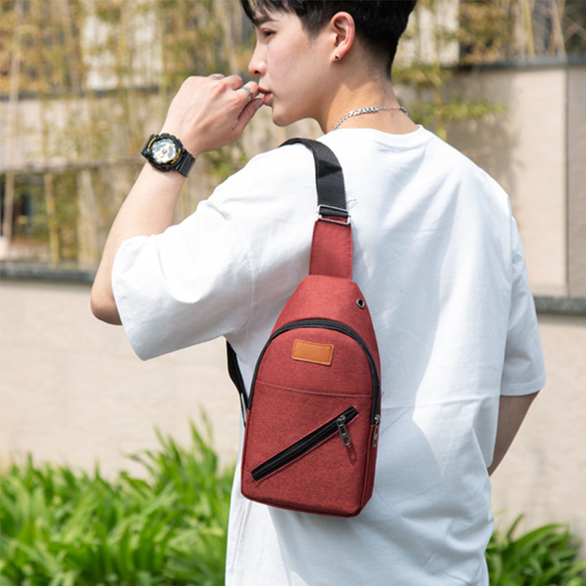 Túi đeo chéo nam nữ có lỗ tai nghe, sạc điện thoại rất tiện lợi.