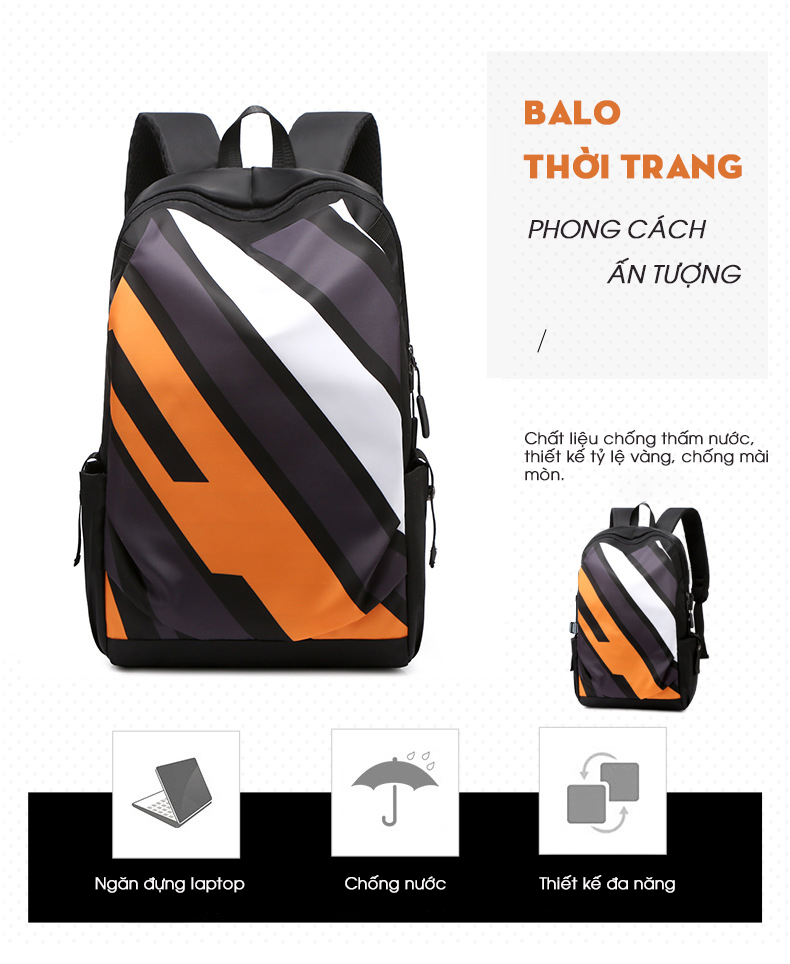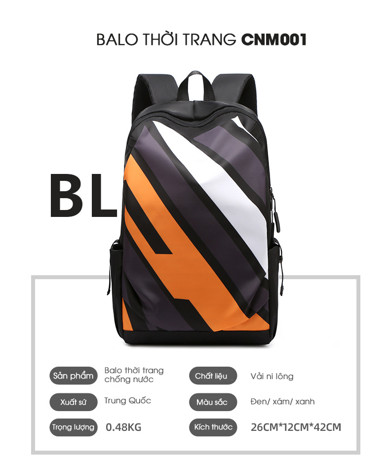 Balo thời trang nam nữ BLCNM001, sản phẩm balo thời trang cá tính được thiết kế tinh tế, đa năng thích hợp mọi nhu cầu sử dụng của người dùng, với các tính năng chống thấm nước, kết nối sạc dự phòng qua cổng USB, cổng kết nối tai nghe bên ngoài.