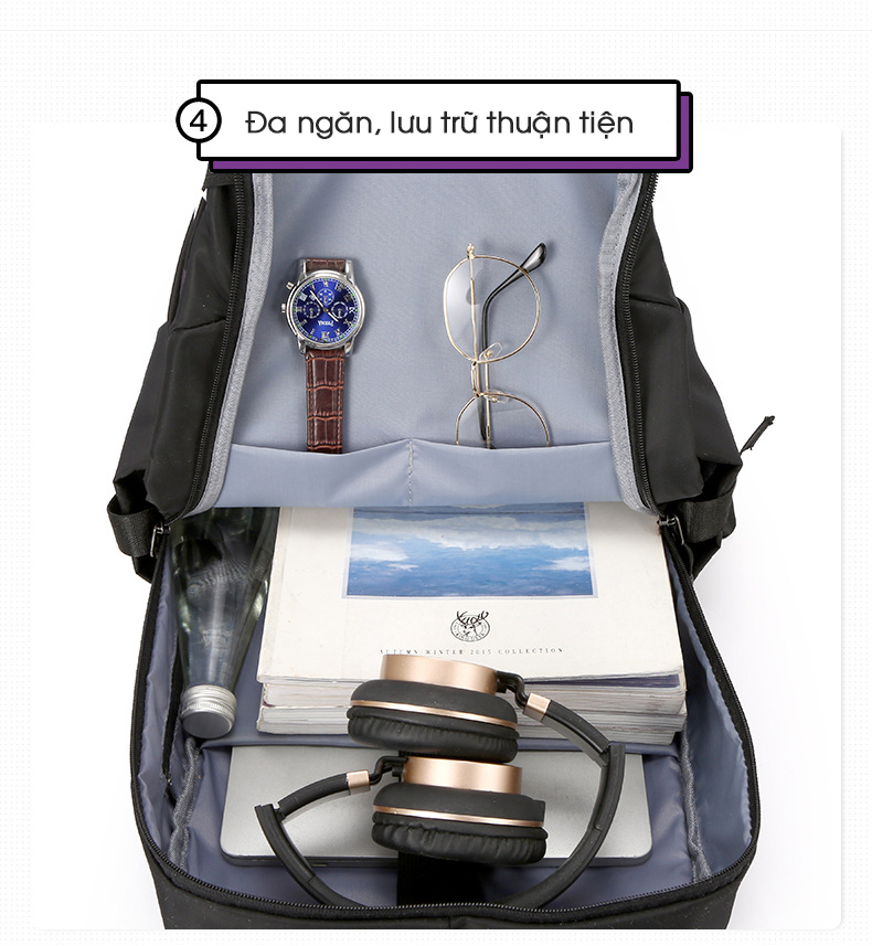 - Balo nam được trang bị thêm ngăn đựng laptop với bộ chống sốc dày dặn. Quai đeo balo chịu lực cao và cực êm chống đau mỏi vai khi mang balo trong thời gian dài.