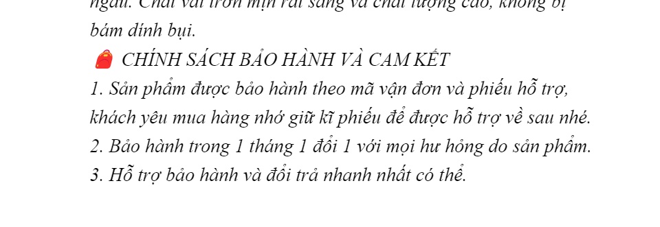 1. Sản phẩm được bảo hành theo mã vận đơn và phiếu hỗ trợ, khách yêu mua hàng nhớ giữ kĩ phiếu để được hỗ trợ về sau nhé.