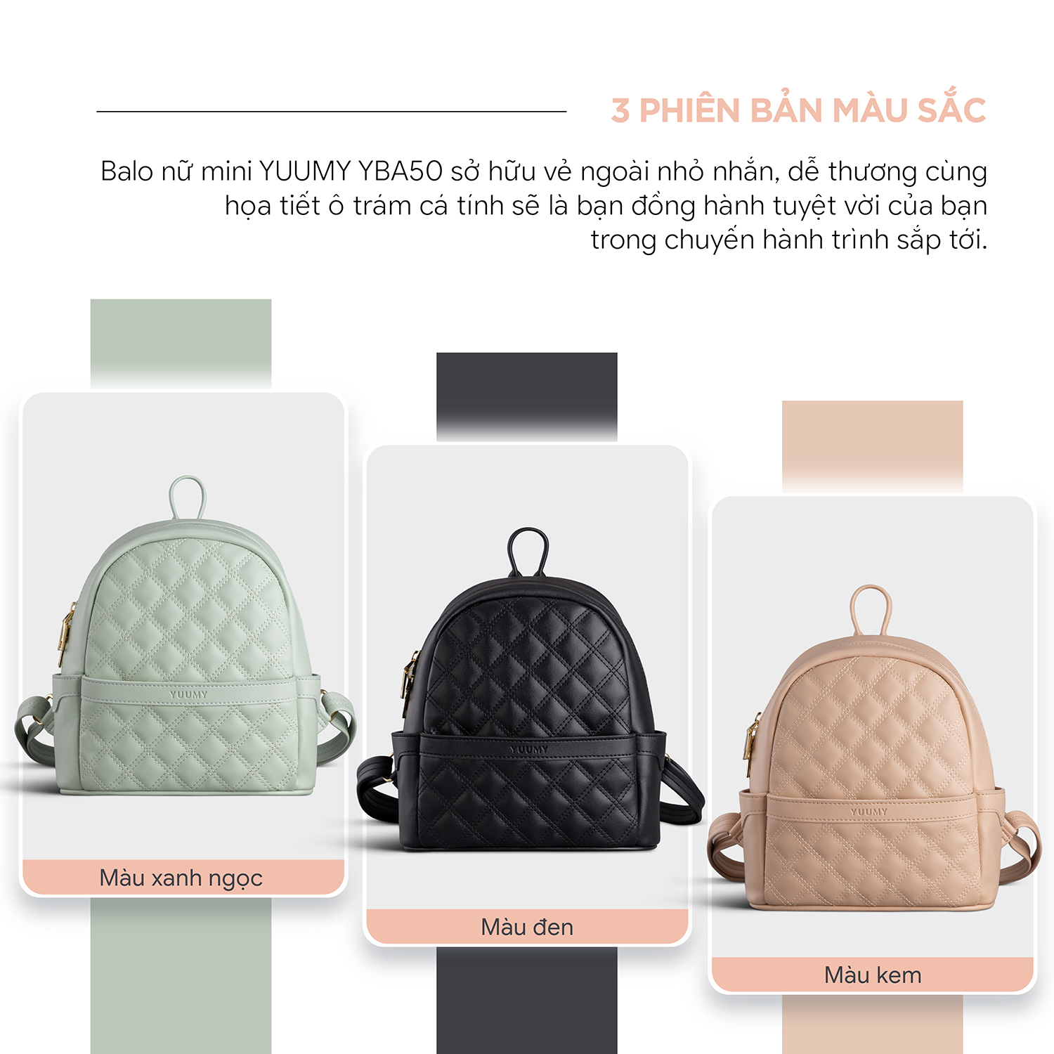Balo nữ mini YUUMY YBA50 sở hữu vẻ ngoài nhỏ nhắn, dễ thương cùng họa tiết ô trám cá tính sẽ là bạn đồng hành tuyệt vời của bạn trong chuyến hành trình sắp tới. Với kích thước gọn nhẹ tích hợp nhiều ngăn đựng cho phép bạn mang theo nhiều đồ dùng và được bảo quản an toàn tuyệt đối bởi khóa zip.