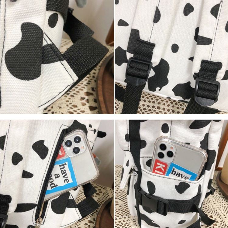 Giới thiệu Balo nữ đi học nhiều ngăn họa tiết bò sữa và ngựa vằn cao cấp Hàn Quốc