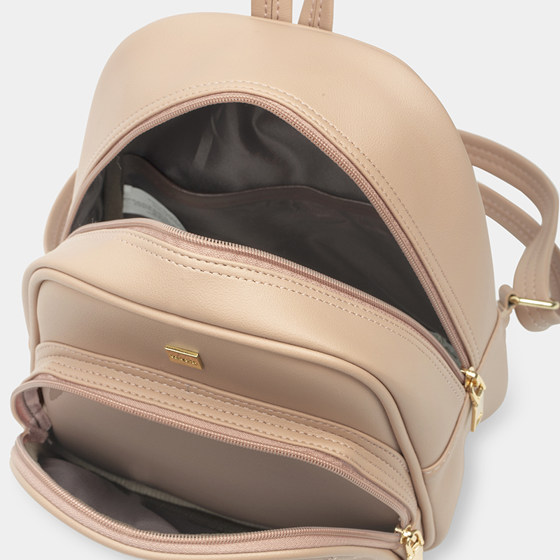 Bên trong balo có 1 ngăn chính để được máy tính bảng từ 7.9inch trở xuống, sách vở khổ A5, điện thoại, ví tiềài ra balo còn có 2 ngăn kéo phụ nhỏ thích hợp đựng thẻ xe, chìa khoáặt trước balo có 1 ngăn phụ thích hợp để sạc dự phòng, bút viế