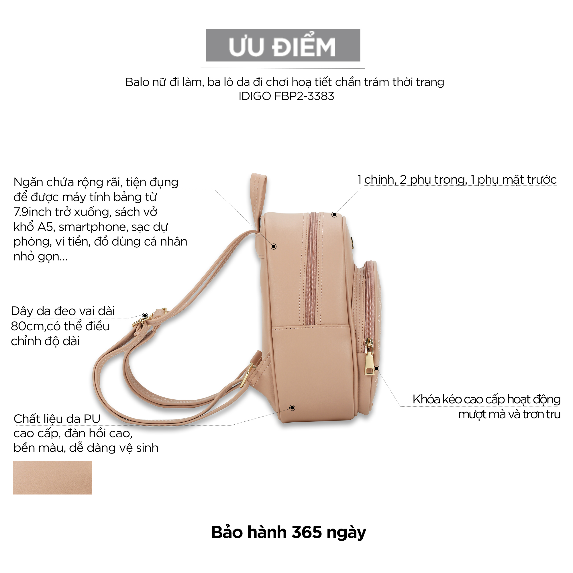 Balo nữ đi làm, ba lô da đi chơi hoạ tiết chần trám thời trang này thích hợp cho cho các bạn mang đi làm, đi du lịch, đi học, đi chơi hay dạo phố cùng bạn bè