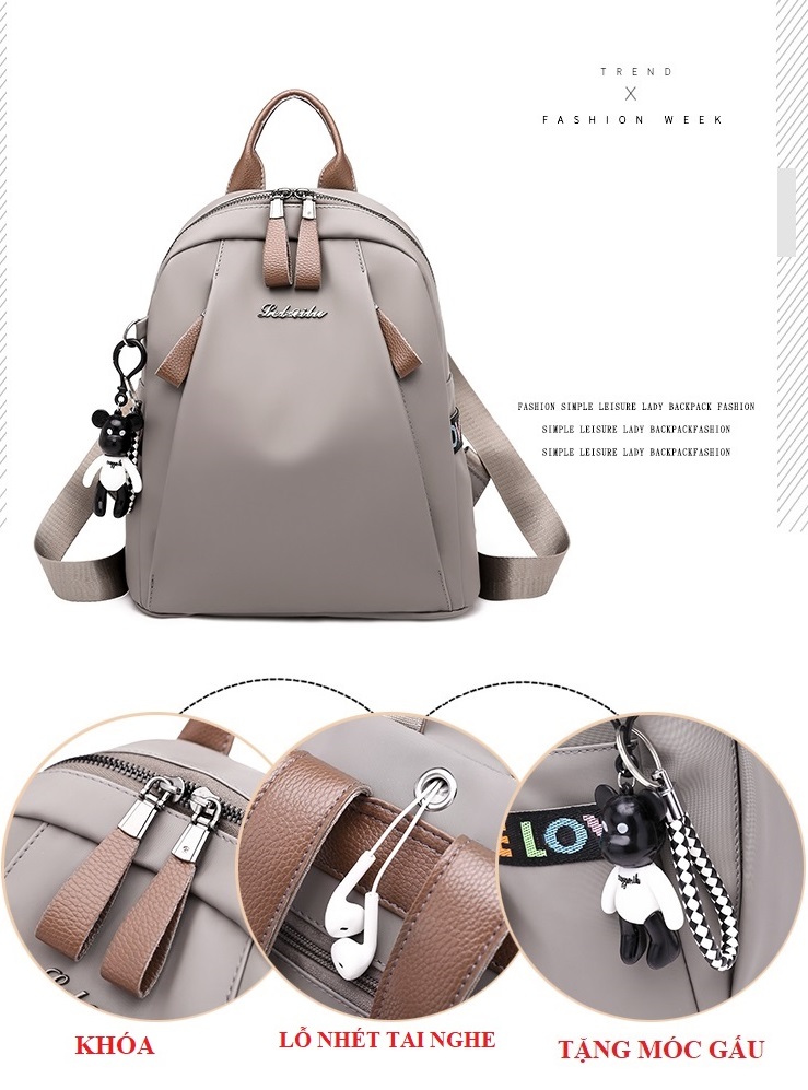 Bạn có thể xách hoặc đeo vai .Ba lô được thiết lế khóa kéo ba chiều vô cùng tiện dụng thời trang